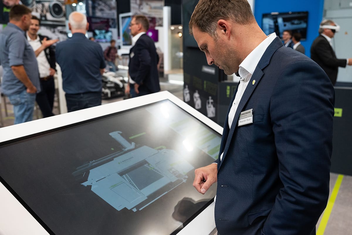 SmartVu with detail product views and most relevant 3D interactions. Shown on a touch display at AMB Stuttgart 2024 tradeshow.
